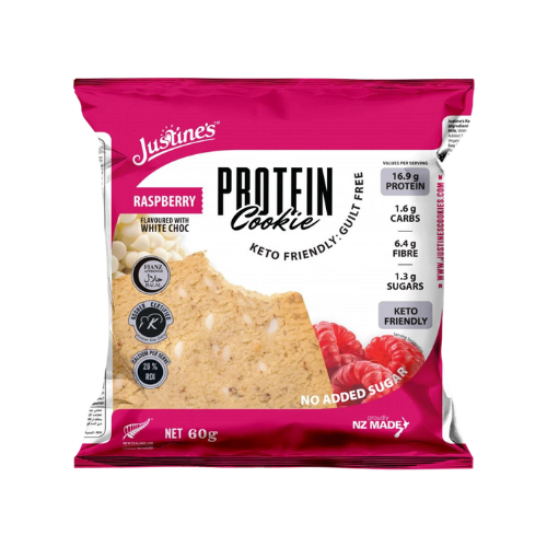 BULK Justine's Raspberry White Choc Protein Cookie - 60g x 12