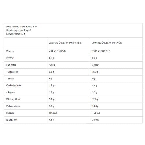 Prepare your taste buds for a tantalizing experience as each bite unveils the lush, creamy white chocolate goodness. As a delightful bonus, every serving provides a substantial 26% of your daily fibre needs, ensuring you stay on track with your health goals. And here's the kicker – it boasts an incredibly low carb count, with a mere 1.8 grams per serving.