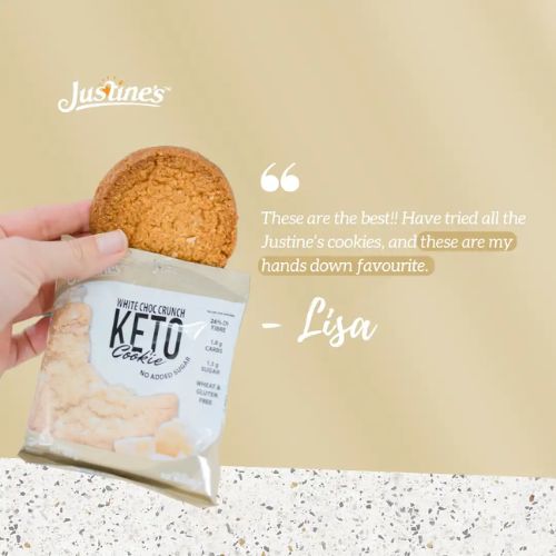 Embark on a guilt-free flavour adventure with our irresistible Keto Milky White Choc Crunch Cookie! This exquisite treat delivers an exquisite fusion of silky-smooth white chocolate, infused with a subtle hint of vanilla, all without a speck of added sugar. Sweetened naturally with erythritol and artfully crafted from the finest ground almond meal, it's the ultimate choice for your keto journey.