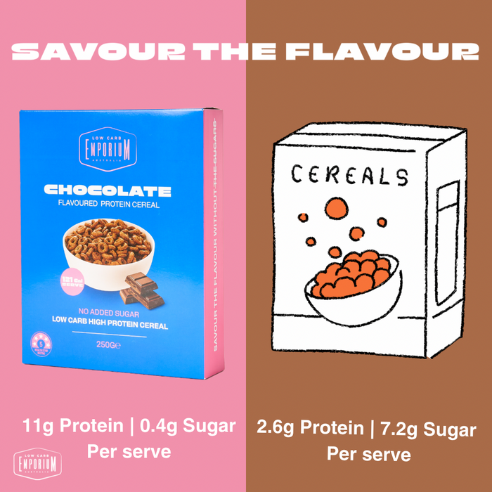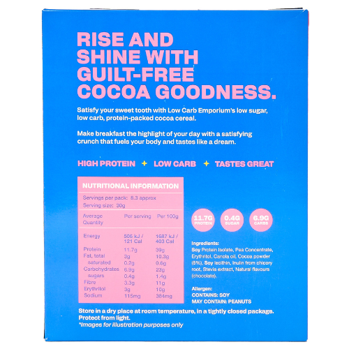 Satisfy your sweet tooth with Low Carb Emporium's low sugar, low carb, protein-packed cocoa cereal. Make breakfast the highlight of your day with a satisfying crunch that fuels your body and tastes like a dream.