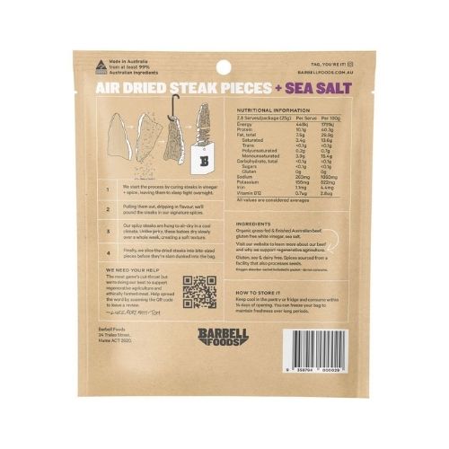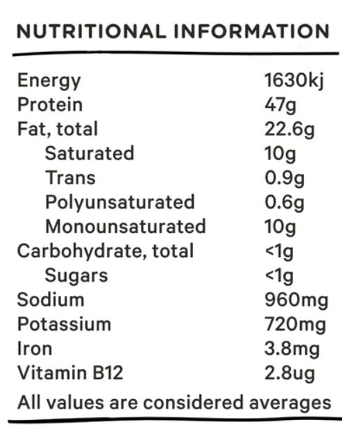 Organic grass-fed & finished Australian beef, gluten-free white vinegar and sea salt.