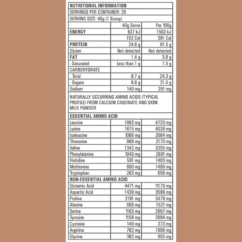 INGREDIENTS: Casein, Skim milk powder, Flavour, Emulsifier (soy lecithin), Natural colour (beta carotene), Sweetener (sucralose).