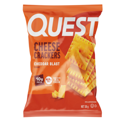 View full detailsQUEST Cheese Crackers - Cheddar Blast - 30g