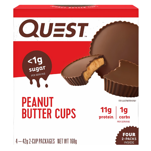QUESTQuest Peanut Butter Cups For the Peanut Butter Fan, Quest Peanut Butter Cups are here. With 11g of protein and 1g of net carbs per serving. Ingredi...