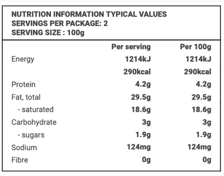 Cream (45%), Palena Fresh Dutch Cocoa, Melvia (Erythritol, Stevia 98%), Pasteurised Egg White, Salt.