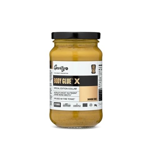 Special Edition Body Glue X FIre Tonic fusion for the ultimate immune and gut defence! This punchy elixir combines our 10 X Collagen Body Glue™ with Fire Tonic, a living infusion of raw unfiltered & hand crafted ACV (w/ Mother) + 23 traditional immune boosting super roots, shoots and fruits.