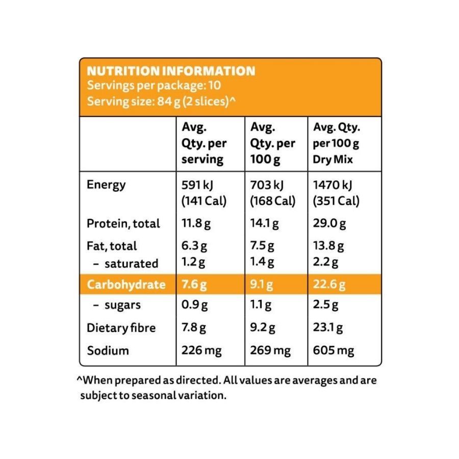 INGREDIENTS: Lupin flour, rice flour, linseeds (18%), golden flaxmeal, egg white powder, sunflower seeds (4.5%), baking powder, kibbled sunflower, salt, chia seeds.