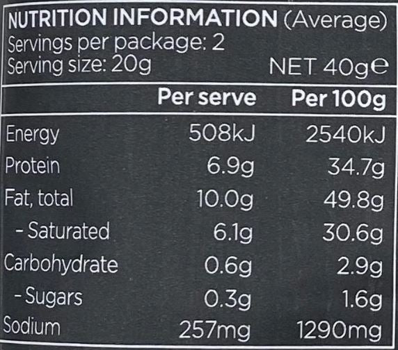 Made from 100% Ashgrove Tasmanian Cheese, Crunchettes are popped in a dehydrator and rolled in Black Truffle seasoning.