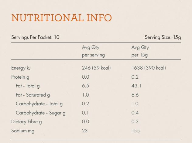 Ingredients: Apple Cider Vinegar (25%), Water, Avocado Oil (22%), Olive Oil, Lemon Juice, Dehydrated Vegetables (Bell Peppers, Onion, Garlic), Himalayan Pink Salt, Flaxseed Fibre, Herbs & Spice.
