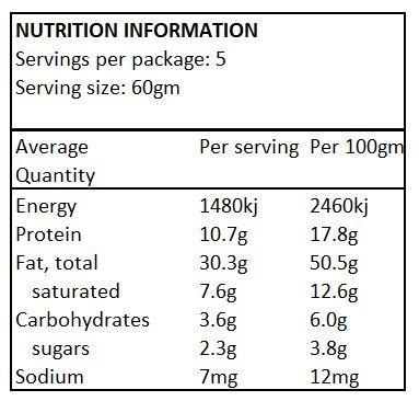 Allergens: may be traces of other tree nuts, eggs, milk, soy, fruit, grains, gluten, cinnamon