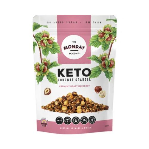 The Monday Food Co's Roast Hazelnut Keto Granola has a delicious combination of almonds, roasted hazelnuts, sunflower seeds, linseeds and pepitas with shredded coconut and cinnamon.