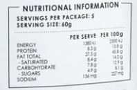 Allergens: may be traces of other tree nuts, eggs, milk, soy, grains, gluten, cinnamon