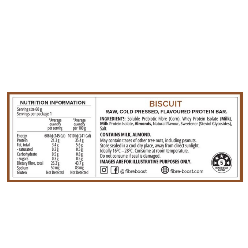 FIBRE BOOST Cold Pressed Protein Bar - Biscuit Flavour 60g