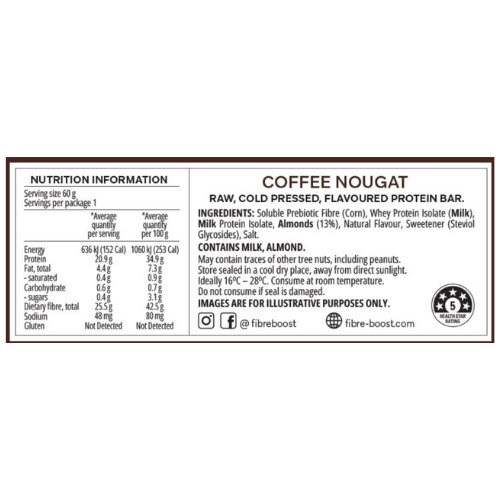FIBRE BOOST Cold Pressed Protein Bar - Coffee Nougat - 60g
