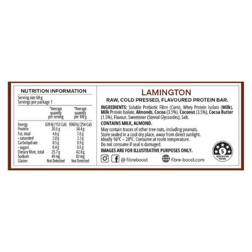 FIBRE BOOST Cold Pressed Protein Bar - Lamington - 60g