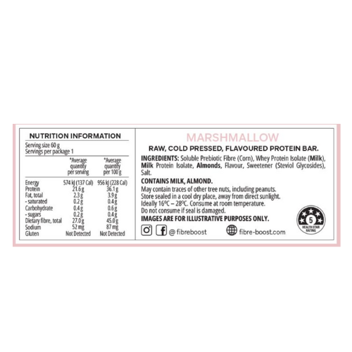 FIBRE BOOST Cold Pressed Protein Bar - Marshmallow Flavour 60g
