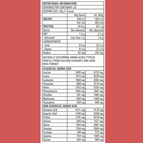 INGREDIENTS: Casein, Skim milk powder, Flavour, Emulsifier (soy lecithin), Natural colour (beta carotene), Sweetener (sucralose).