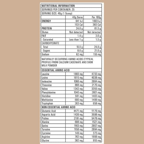 INGREDIENTS: Casein, Skim milk powder, Flavour, Emulsifier (soy lecithin), Natural colour (beta carotene), Sweetener (sucralose).