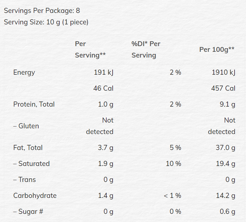 Dark Chocolate contains minimum: 65% Cocoa Solids.