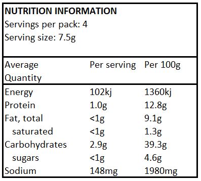 Turmeric, Cumin, Garlic, Onion, Coriander Powder, Fenugreek, Ginger, Cinnamon, Sea Salt, Chilli, Black Pepper