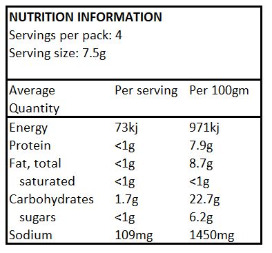 Fennel, Coriander, Pink Himalayan Salt, Tumeric, Black Pepper, Cumin, White Pepper, Ginger, Chilli, Sweet Paprika, Caraway, Nutmeg, Cardamon.