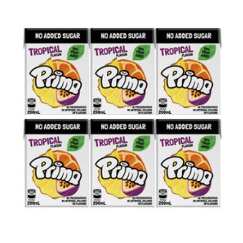 Prima No Added Sugar Tropical Flavour Fruit Drink - 6 x 200mL