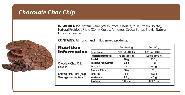 - Carbs: Sorry no carbs here! Well OK. Our bars have some carbs (around 2-4 grams per serve), but only those that occur naturally in the protein, nuts and dried fruits which are used in some of our flavours.