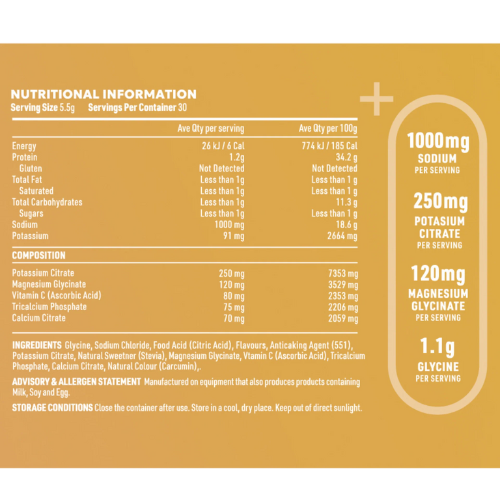 ReVitalise Sodium+ delivers 1000mg of sodium per serve—plus the ideal blend of magnesium, potassium, calcium, and glycine—for hydration that goes deeper and lasts longer.