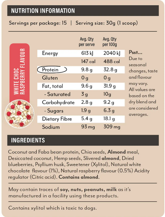 Snackn' Protein Breakfast Bircher Muesli White Choc Raspberry Flavour - 450g (15 serves)